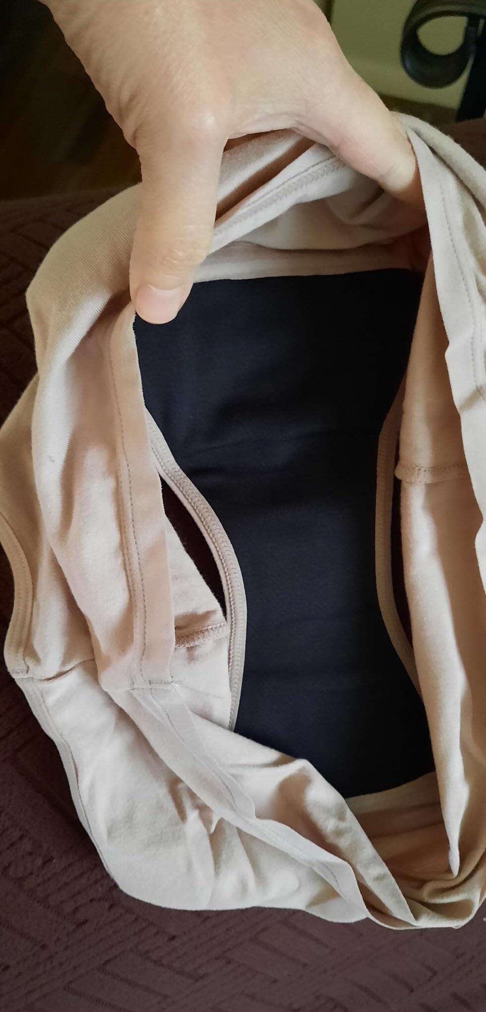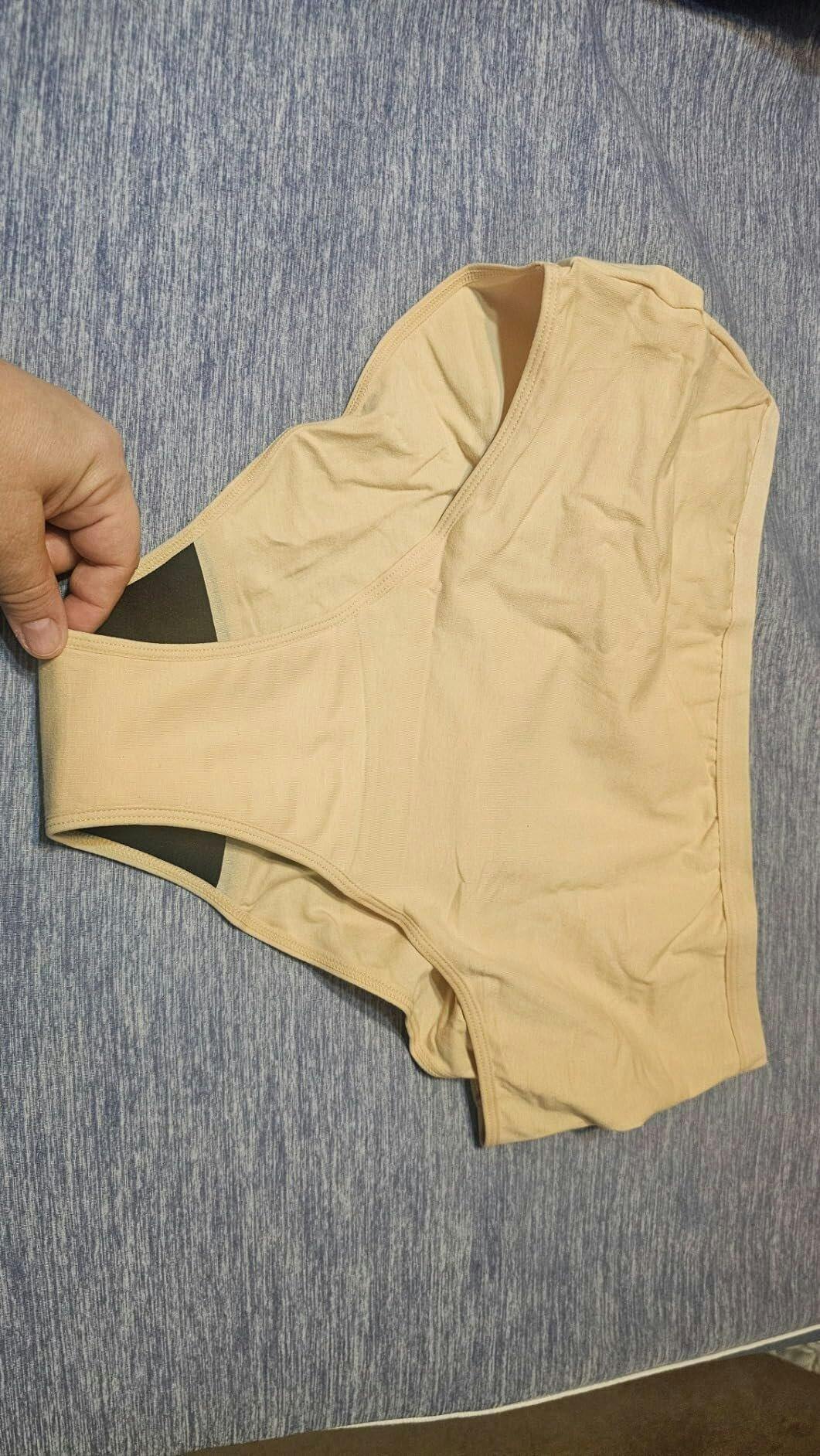 Se ven idénticos a mi ropa interior para la menstruación. Pensé que tal vez serían más acolchonados o voluminosos, ¡pero no! Son muy cómodos de usar y puedes ponértelos debajo de cualquier ropa sin que se note nada extraño porque no añaden volumen extra. Todo el acolchado está en la zona de la entrepierna. Recuerda NO meterlos en la secadora. Lávalos a mano y déjalos secar extendidos. O si eres como yo, los pongo en una bolsa para lavar, los lavo en frío y luego los dejo secar colgados.