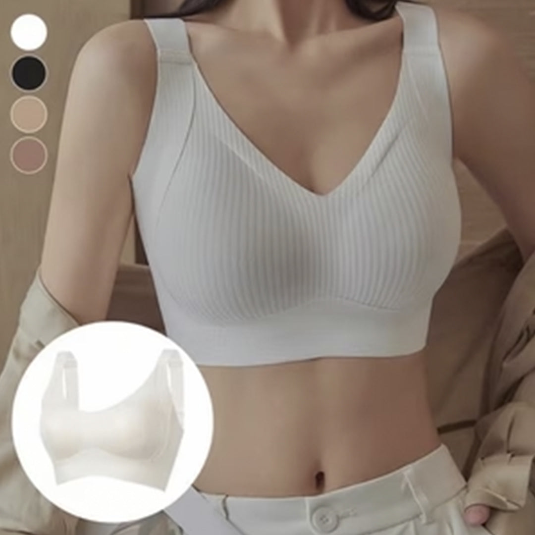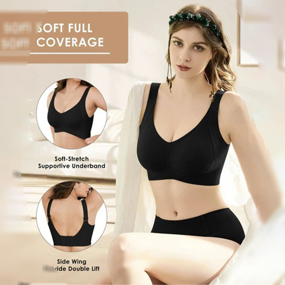"Realmente estoy sorprendida con este sostén sin aros! He probado muchos sostenes sin aros, pero ninguno ha sido tan cómodo y que mantenga la forma como este. La tela es suave, elástica y al ponérmelo se siente como si no llevara nada, pero aún así ofrece un excelente soporte. Lo más importante es que después de varios lavados, el sostén sigue manteniendo su forma y la tela suave como el primer día, sin deformarse ni arrugarse. Lo usé todo el día en el trabajo y no me sentí incómoda ni tuve que ajustarlo. Definitivamente es una inversión para quienes buscan la comodidad total sin sacrificar el soporte!"