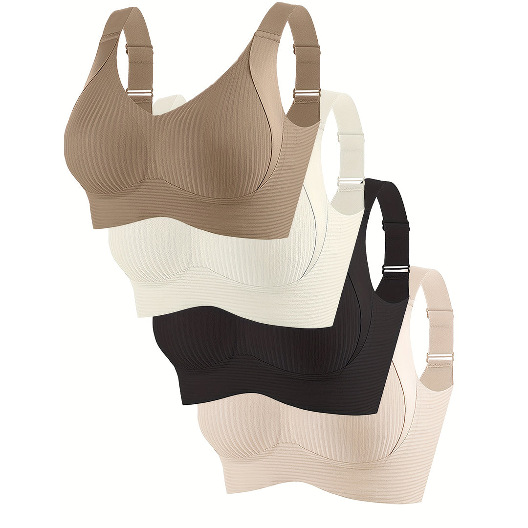El sistema de ganchos de cuatro filas, discreto, garantiza un ajuste perfecto con orificios de ventilación en las copas para que te mantengas fresca de la mañana a la noche.
