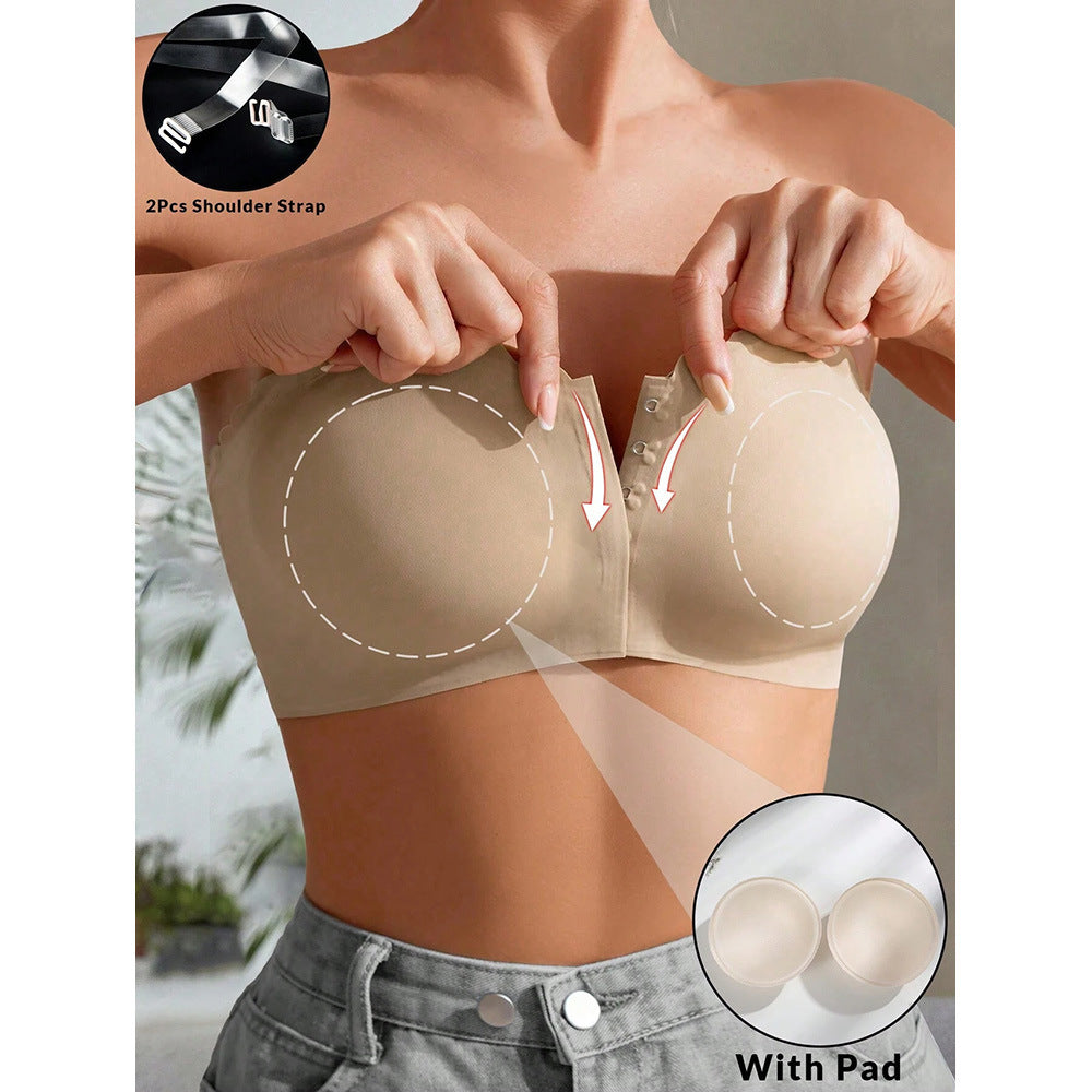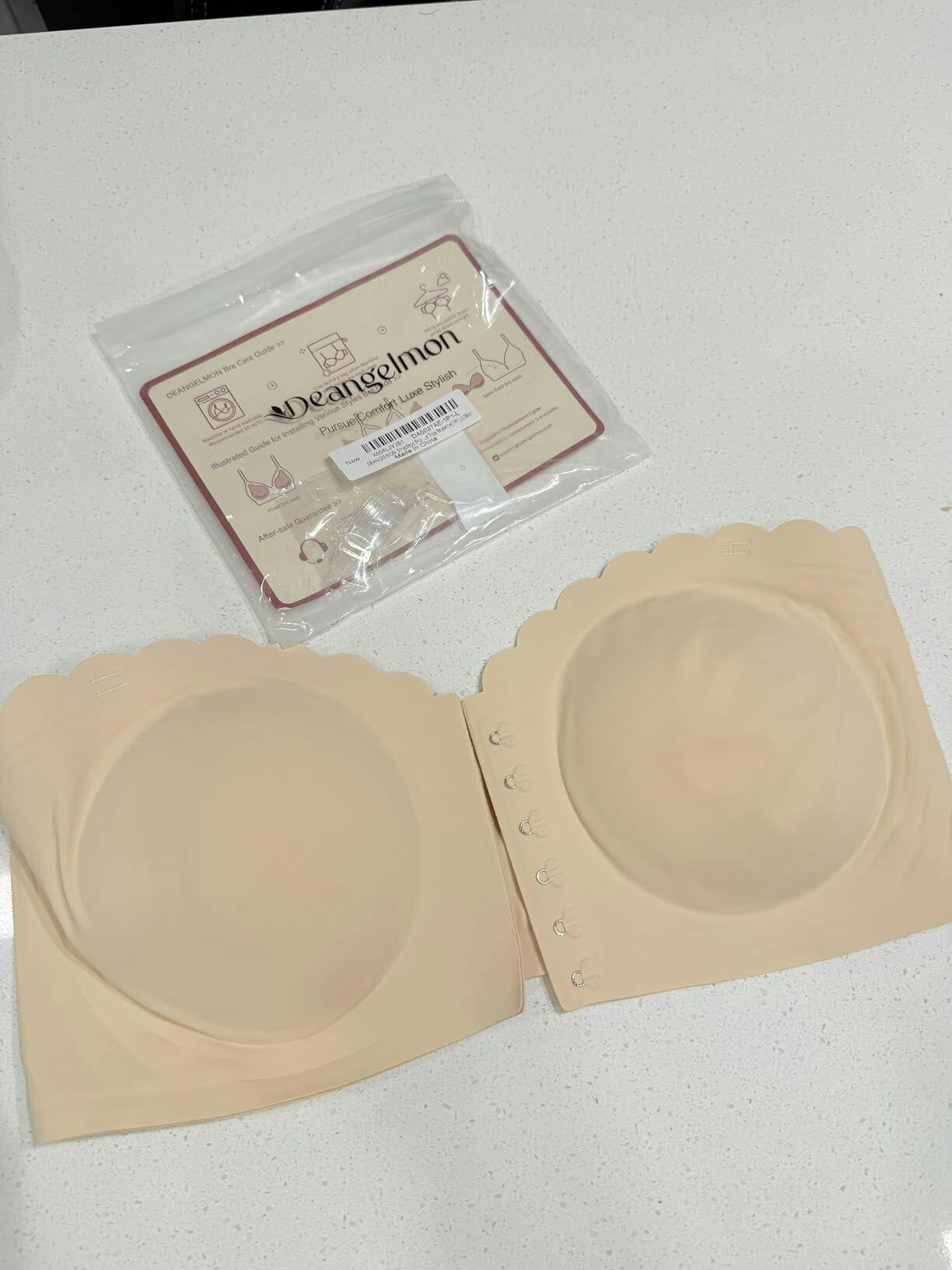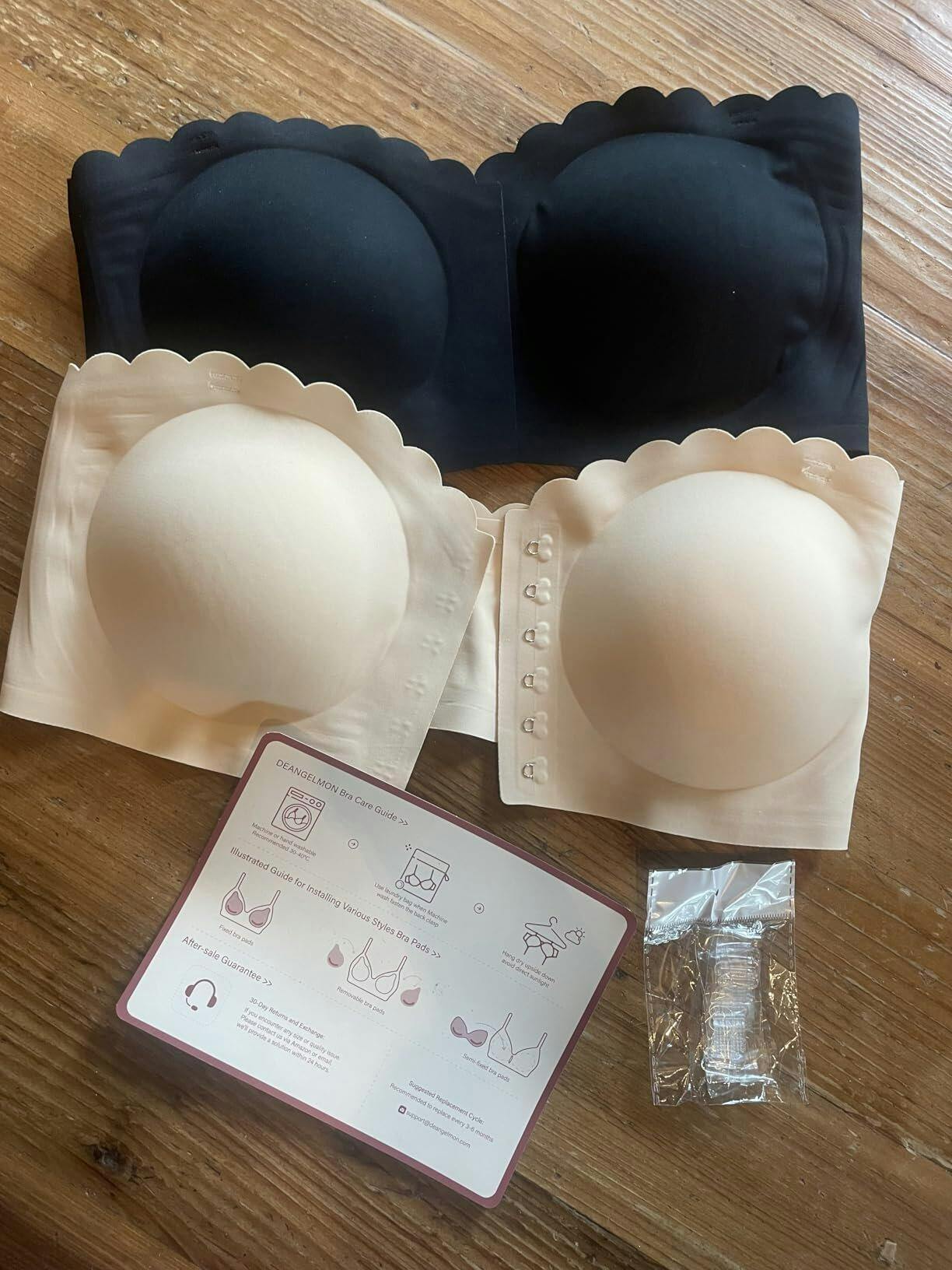 He tenido dificultades para encontrar un sostén sin tirantes que se quede en su lugar y que no se note bajo la ropa. ¡Este sostén cumple con esos requisitos! El cierre en el frente es muy conveniente y la banda de silicona en la parte superior mantiene el sostén en su lugar de forma cómoda. Soy talla 36C y pedí la talla mediana, ¡el sostén me queda perfecto! Me encanta que los almohadones sean removibles, y el empaque incluso incluye consejos sobre cómo usar diferentes tipos de almohadones en los "bolsillos" para crear diferentes formas. También incluye tirantes transparentes ajustables para diferentes tipos de escotes. ¡Es una excelente oferta, recibes colores negro y nude en un solo pedido! Si estás dudando, ¡no lo pienses más y haz tu pedido!